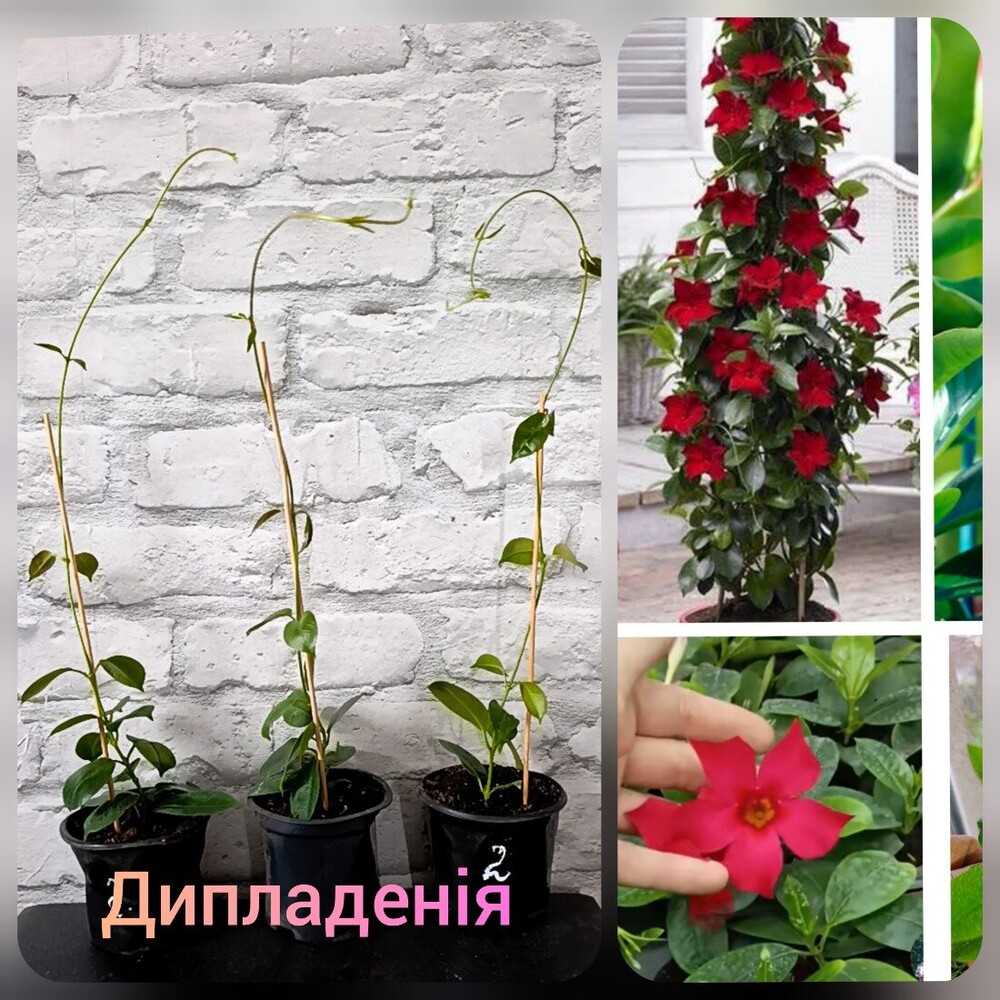 ипладенія (або мандевілла) — це вишукана тропічна ліана, яка цінується за тривале цвітіння з травня по жовтень. Її яскраві квіти-грамофони можуть бути червоного, рожевого або білого кольору з характерним жовтим горлом.